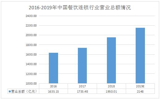 圖表:2016-2019年中國餐飲連鎖行業營業總額情況