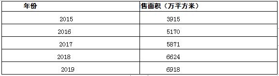 圖表:2015-2019年中國工業地產行業銷售面積情況
