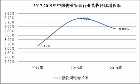 圖表:2017-2019年中國物業管理行業營收同比增長率情況
