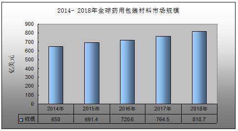 近些年,隨著經濟的不斷發展和人口老齡化的不斷加重,全球醫藥包裝材料行業發展規模不斷擴大,2014-2018年,全球醫藥包裝市場的產值從650億美元增長至818.7億美元。