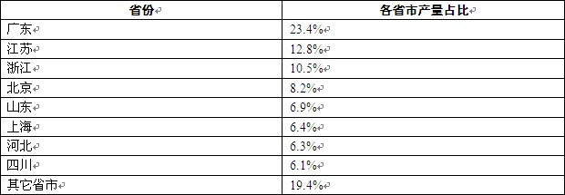 中國智能后視鏡生產(chǎn)區(qū)域分布