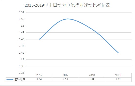 圖表:2016-2019年中國動力電池行業(yè)速動比率情況