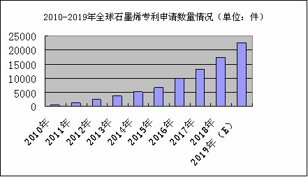 圖表:2010-2019年全球石墨烯專利申請數量情況(單位:件)