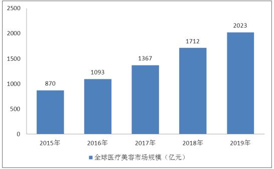 近幾年,顏值經濟直接推動了醫療美容行業發展。截至2019年末,全球醫療美容服務市場規模達到2023億元。