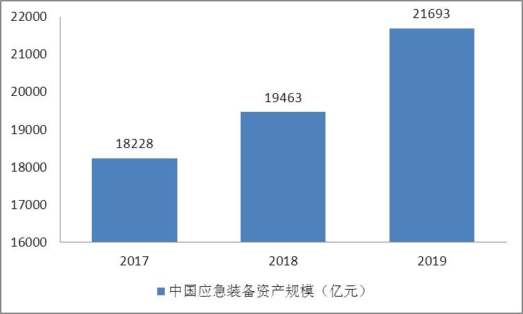 數據顯示,2017年中國應急裝備行業資產規模為18228億元,2019年增長至21693億元。