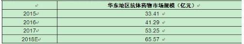 圖表:2015-2018年華東地區(qū)抗體藥物市場規(guī)模