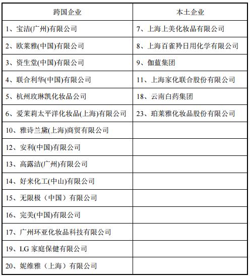 圖表:2019年我國(guó)化妝品企業(yè)前二十排名