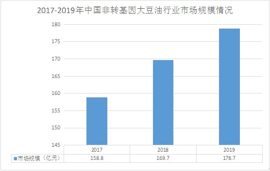 圖表:2017-2019年全球非轉基因大豆油市場規模情況