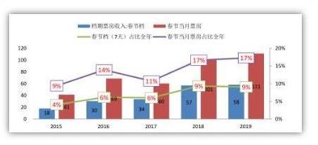 圖:2015年-2019年電影春節的及春節當月票房情況