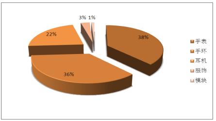 圖表:2018年中國(guó)可穿戴設(shè)備細(xì)分領(lǐng)域產(chǎn)品份額結(jié)構(gòu)占比