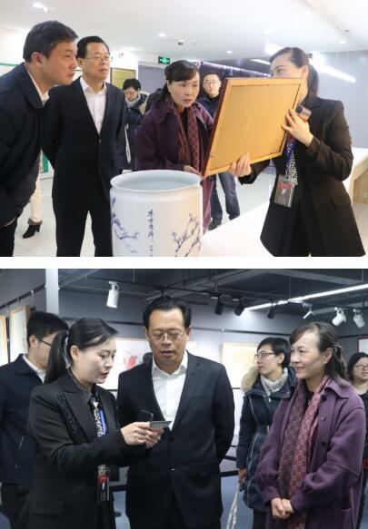 趙建明領導一行先后參觀了泰豐文化的區塊鏈平臺架構系統、泰豐文化的榮譽成就以及藝術展廳,詳細了解了泰豐文化的發展歷程、自主創新成果、科技賦能文化的全面布局等情況,認真聽取了泰豐文化在互聯網平臺的區塊鏈實際應用匯報,以及其他重點合作項目匯報等,從行業發展及政府監管需求角度提出諸多專業性建議。