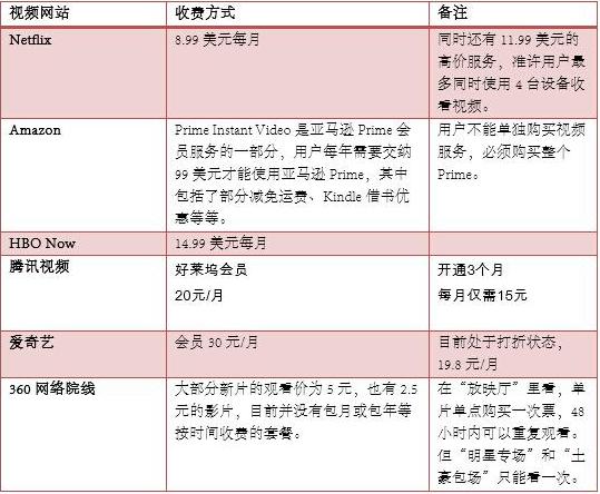 在中國即將開局的視頻付費模式,在美國已經(jīng)發(fā)展了相當長的一段時間。下圖對比了中美主要視頻網(wǎng)站的付費情況。