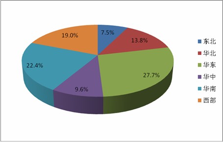 圖表:2019年中國智能學習燈行業需求地域分布結構