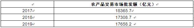 圖表:2017-2019年億元以上交易市場(chǎng)農(nóng)產(chǎn)品批發(fā)額