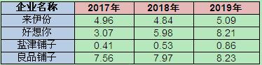 圖表:2017-2019年重點企業果干蜜餞類產品收入對比(單位:億)