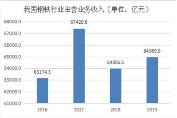 圖表:2016-2019年我國鋼鐵行業(yè)主營業(yè)務(wù)收入