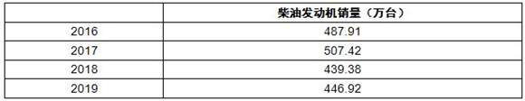 圖表:2016-2019年中國柴油發動機銷量