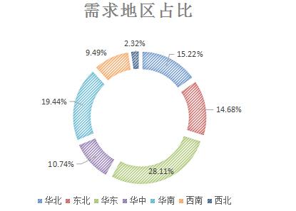 柴油發動機主要應用的領域的商用車和工程機械,因此柴油發動機的需求區域主要就集中在商用車和工程機械行業的生產制造地區,其中華東地區和華北地區是我國商用車和工程機械的主要生產地區,所以對柴油機的需求也就越高,兩個地區的需求占比將近50%。