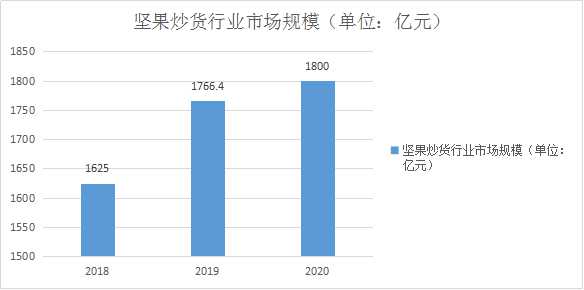 堅果成為消費者“吃得多”零食產品排列首位,被消費者高度認可。數據顯示,自2014年以來,我國堅果炒貨行業市場規模穩步擴大,至2020年,中國堅果炒貨行業市場規模已達1800億元,較2010年增長了近2.5倍。種種跡象表明,堅果炒貨行業發展趨勢已進入快車道,正是掘金的下
