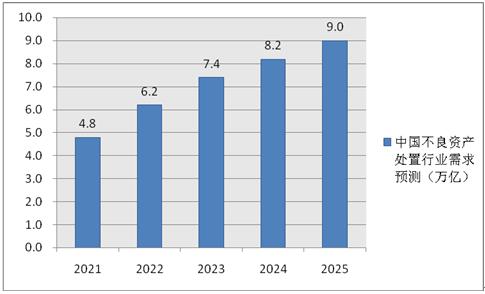 圖表:2021-2025年我國商業銀行不良資產管理行業需求預測(單位:萬億元)