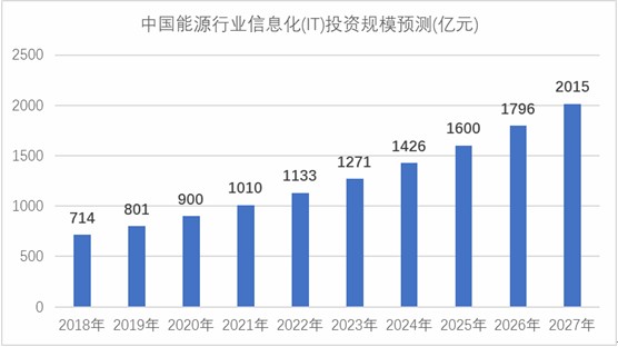 未來(lái),能源行業(yè)將會(huì)加大對(duì)信息化建設(shè)投資,隨著投資規(guī)模的加大,預(yù)計(jì)到2025年能源行業(yè)IT規(guī)模將達(dá)到1600億元,市場(chǎng)空間較2019年擴(kuò)大一倍。照此推算,2027年的投資規(guī)模將超過(guò)2000億元。