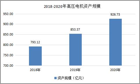 據(jù)數(shù)據(jù)顯示,2018年高壓電機(jī)行業(yè)資產(chǎn)規(guī)模793.12億元,2019年高壓電機(jī)資產(chǎn)規(guī)模853.37億元,2020年高壓電機(jī)資產(chǎn)規(guī)模926.73億元,同比增加8.59%。
