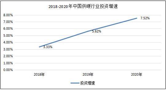 據數據顯示,2018年中國供暖行業投資增速為3.33%,2019年中國供暖行業投資增速為5.62%,2020年中國供暖行業投資增速為7.52%,2018-2020年期間投資增速穩定增長。