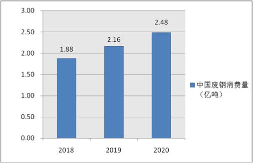 圖表:2018-2020年我國廢鋼消費量(單位:億噸)