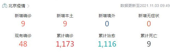 北京疫情最新消息,北京新增本土確診9病例具體情況公布,一家五口確診。11月2日0時至24時,北京新增8例本土確診病例(其中病例1至4昨日已通報)和1例無癥狀感染者轉確診病例,無新增疑似病例和無癥狀感染者;無新增境外輸入確診病例、疑似病例和無癥狀感染者。