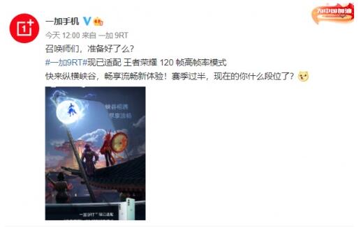11月8日,據一加手機官方微博消息稱,一加 9RT現已適配《王者榮耀》120幀高幀率模式,游戲玩家可以暢享流暢新體驗。結合此前的消息,目前一加 9RT已經支持《王者榮耀》120幀高幀模式與《和平精英》90幀高幀率模式,還與原神達成了戰略合作,可見一加 9RT十分重視用戶實際使用需求。