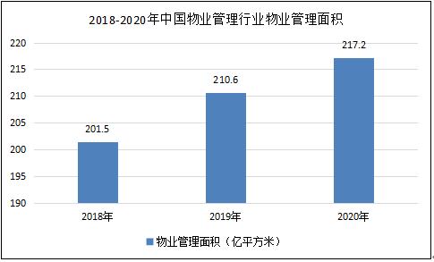 2018年以來,我國物業管理面積不斷增長,由201.5億平方米增長到2020年217.2億平方米,行業資產規模也不斷增長。