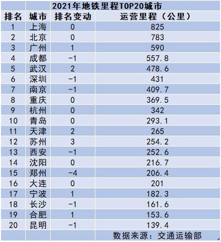 2021年城市軌道交通運營成績單