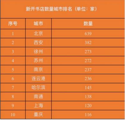 《2020-2021中國實體書店產業報告》顯示,2020年中國新開書店4061家,關閉書店1573家,新開數量是關閉數的2.6倍。而在美國這兩項數據分別對應的數字為84家和63家,新開約為關閉的1.3倍。其中,2020年中國新開書店最多的城市是北京,共計新開書店639家。這個數量也幾乎是2020年美國全國新開書店總數的8倍。