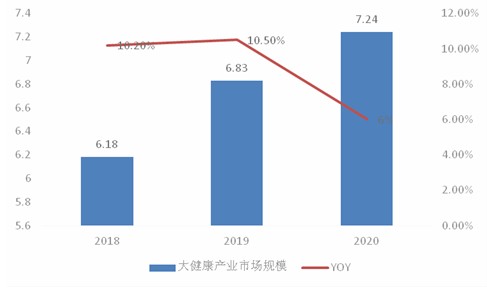圖表:2018-2020年我國大健康產業市場規模情況(單位:萬億元)