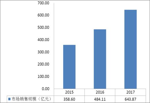 圖表:2015-2017年中國女性私處護理液市場銷售規(guī)模
