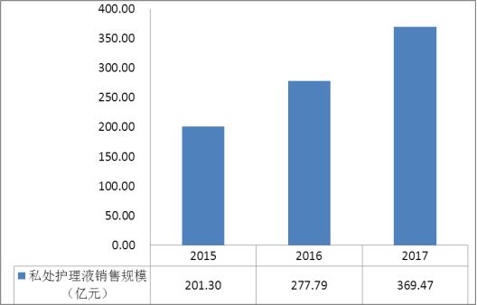 圖表:2015-2017年中國女性私護品市場銷售規(guī)模