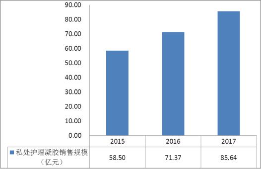 根據(jù)世界衛(wèi)生組織(WHO)的調(diào)查顯示,我國有96%以上的已婚婦女患有不同程度的婦科疾病,常見的婦科病發(fā)病率在87.6%以上。中國婦女宮頸癌的發(fā)病率占世界的1/3。婦科疾病嚴重影響著女性的生活,帶來了諸多的不便。在此基礎(chǔ)上,女性私護凝膠迎來市場需求,2015年,女性護理凝膠的市場銷售規(guī)模約為58.5億元,2016年增長至71.37億元,2017年全年達到85.64億元,復合增長率超過20%。