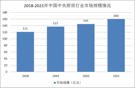 目前我國中央廚房已經普及到大部分連鎖餐飲業,隨著中央廚房數量的增加,國內中央廚房行業市場規模也處于不斷增長態勢,2019年,國內中央廚房市場規模約137億元,到了2021年,國內中央廚房行業市場規模已經達到了160億元,較2020年增長10.34%。