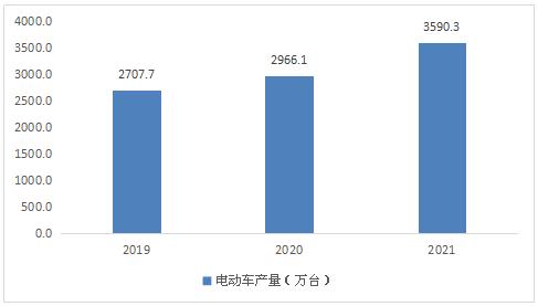 近三年來,我國電動自行車市場的需求量平均值為2893.8萬輛,從需求的變化趨勢來看,我國電動自行車在2019年的需求量為2564.7萬輛,在2020年為2732.7萬輛,在2021年為3383.9萬輛。
