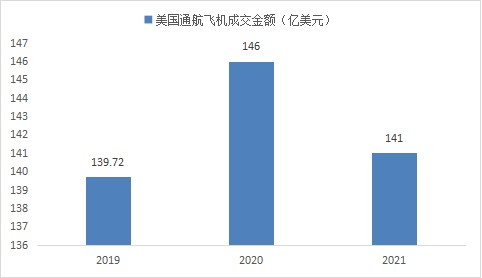 圖表:2019-2021年美國(guó)通用飛機(jī)成交金額(億美元)