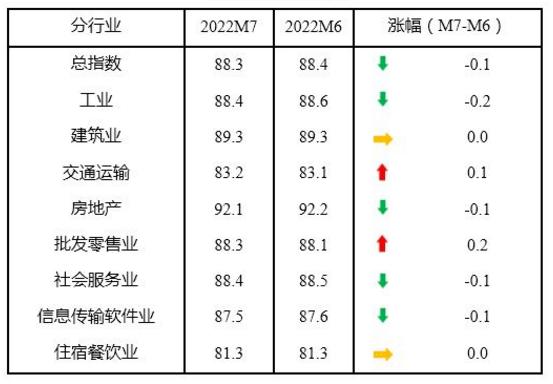 據報道,7月份中國中小企業發展指數(SMEDI)為88.3,環比下降0.1點,在上個月回升的基礎上略有下降。低于2021年同期水平。8個分行業指數2升2平4降。交通運輸郵政倉儲業和批發零售業指數分別上升0.1點和0.2點,其中,建筑業、交通運輸郵政倉儲業和批發零售業指數已連續3個月上升;工業、房地產業、社會服務業和信息傳輸計算機軟件業指數由升轉降。