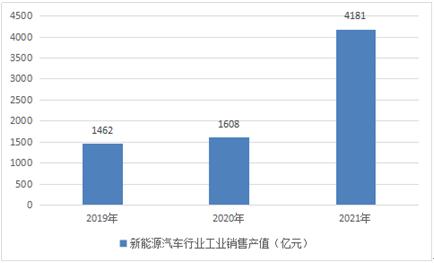 圖表:2019-2021年中國新能源汽車行業工業銷售產值情況