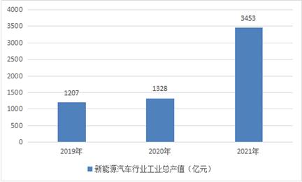 圖表:2019-2021年中國新能源汽車行業工業總產值情況