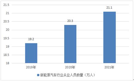 圖表:2019-2021年中國新能源汽車行業從業人員數量情況