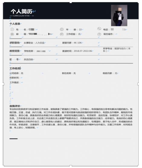 從圖6中可以看出,畢業三年簡歷仍寫不滿一張紙,除身高外,并未看出有任何優勢。