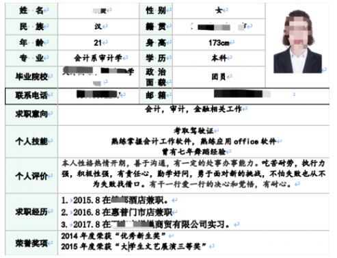 圖7(為保護個人信息,簡歷中刪除部分信息)