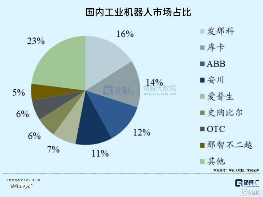 日本發那科及安川電機、瑞士ABB及德國庫卡(已被美的收購),合稱“四大家族”。這個神奇的組合,霸占了中國工業機器人一半以上的市場,并占全球約50%的份額,是主流的工業機器人供應商。
