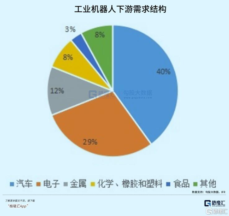 不過截止到今年,中國50%以上的工業機器人仍應用于汽車制造業,其中大半為焊接機器人;在發達國家,汽車工業機器人也占機器人總保有量的53%以上。