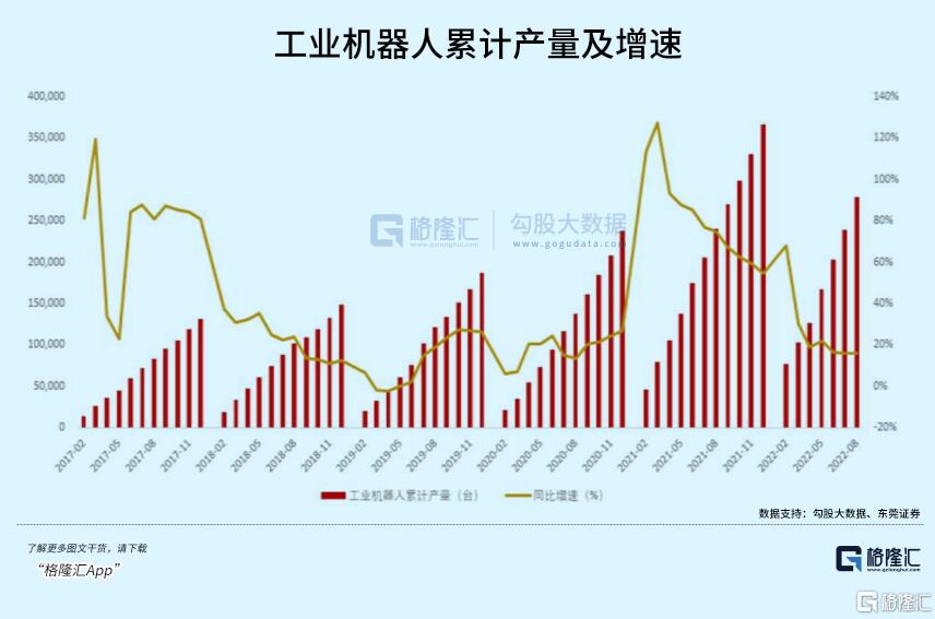 總體來看,中國是全球最大的工業機器人市場,且增速遠超行業平均水平。據IFR統計,2021年中國工業機器人安裝量達24.3萬臺,幾乎與世界其他地區的總和相當。