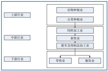 肉牛養(yǎng)殖行業(yè)的上游行業(yè)的上游為谷物、豆類種植業(yè),下游為餐飲業(yè)及零售業(yè)。